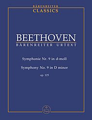 Sinfonie Nr. 9 d-Moll op.125, Partitur?Reihe : Bärenreiter Studienpartituren - Study scoresAusgabe : Studienpartitur; UrtextausgabeHerausgeber : Del Mar, JonathanEinband : kartoniertInstrumentierung : Sopran solo, Alt solo, Tenor solo, Bass solo, Gemischter Chor-SATB, Piccolo, 2 Flöte, 2 Oboe, 2 Klarinette in b, 2 Fagott, Kfag, 4 Horn, 2 Trompete, 3 Posaune, Pauke, Schlagzeug, StreicherAufführungsdauer : 65'