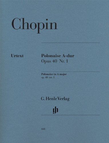 Polonaise Op.40/1 La Maj. (Militaire) - Piano?Compositeur : Chopin, FrédéricInstrumentation : Piano soloEditeur Musicologique : Zimmermann, EwaldCouverture ReliéeContenu : Polonaise A major op. 40,1 [Militaire]