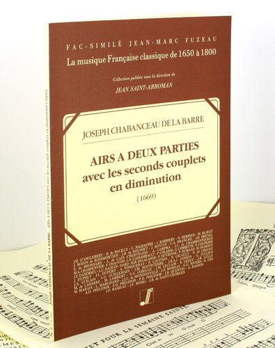Airs à deux parties, avec les seconds couplets en diminution. . Fac-Similé FuzeauPartition pour Voix (dessus, mezzo, taille, basse) et Basse ContinueEdition : Paris, C. Ballard, 1702Dans sa table des matières, le compositeur précise que les six premiers motets peuvent être chantés par une soprano ou un ténor.Présentation de Philippe Lescat : Terminologie italienneJean Saint-Arroman : Chiffrages de la basse continueCompositeur : BROSSARD Sébastien deAuteur : LESCAT Philippe - SAINT-ARROMAN JeanCollection : Musique Française classique de 1650 A 1800Contenu :Ave Vivens Hoftia - O Jefu quam dulce - Congratulamini filiae Sion - O vos aetherei - Feftivi Martyres - Angele Sancte - Sonitus armorum - Quemadmodum defiderat - O plenus irarum DiesFormat : 24 x 33Nombre de pages : 108Date de parution : 02/1986Partition pour Voix (dessus) et Basse continue.Editions : Paris, R. Ballard, 1669Ces airs sont notés en clef de Sol seconde ou clef d'Ut première pour la partie supérieure. Les textes conviennent cependant plutôt à des hommes qu'à des femmes. Bien que la clef de Sol et la clé d'Ut première correspondent plus généralement à la voix de soprano (dessus), on pourra faire chanter ces airs par un ténor ou une voix de haute-contre Française, conformément aux usages du XVIIe siècle.Présentation de Philippe Lescat : vie et oeuvre de Joseph Chabanceau de La BarreJean Saint-Arroman : la notation, l'agrémentation.Compositeur : CHABANCEAU DE LA BARRE JosephAuteur : LESCAT Philippe - SAINT-ARROMAN JeanCollection : Musique Française classique de 1650 A 1800Contenu :Ah!je fens que mon coeur - Allez Bergers duffus l'herbette - Depuis quinze, jufqu'A trente - Dequoy me fert de voir - Forefts folitaires, & fombres - François? foyez tous réjouïs - J'avois juré de n'aymer plus - Il faut aymer une Bergere - L'aymable Iris eft de retour - Petit ruiffeau qui coulez lentement - Plus je penfe A ma Maitreffe - Quand on vous dit que l'on vous ayme - Quand une ame eft bien atteinte - Si c'eft un bien que l'efperance - Triftes...