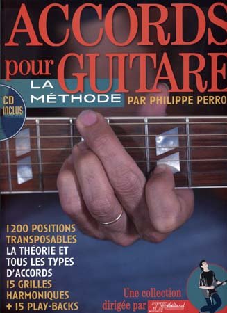 Accords pour Guitare 1200 Positions Transposables CD?Pour la première fois, une méthode, un guide d?utilisation et un dico d?accords réunis dans un même ouvrage.1200 positions transposables pour connaitre plus de 15000 accords.Titres :LA METHODE : La notation internationale ? Les intervalles ? Les triades ? Les tétrades ? Harmonisation des modes majeur et mineur avec les triades et les tétrades ? Renversements d?accords ? Figuration des accords ? Accords enrichis ? Suppressions ? Les 3 principales familles d?accords ? Les powerchords ?LE GUIDE : Connaissance du manche et loi des octaves ? Lecture des diagrammes d?accords ? Les 5 formes d?accords ? Transposition des 5 formes ?LE DICO : Accords majeurs (M, M7, 6, 6/9, Add9, M9?) ? Accords mineurs (m, m7, m7b5, m6, m6/9, m9?) ? Accords de dominante (7 de dom, sus4, 7sus4, sus9, 7#5, 9ème, 11ème, 13ème, 7ème diminuée?) ? Powerchords ? Accords incluant des cordes à vide ? Progressions harmoniques, fonction et utilisation des accords dans tous les styles.LE CD : Jouez immédiatement les accords du dico sur 15 playbacks (chanson et accompagnement, folk, blues, rock, reggae, metal, soul, funk, jazz?).